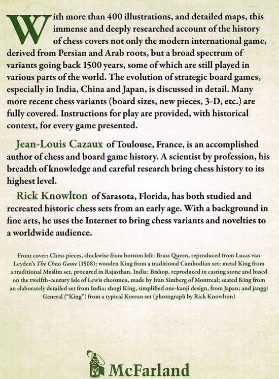 A WORLD OF CHESS Its Development and Variations through Centuries and Civilizations by Jean-Louis Cazaux and Rick Knowlton BACK COVER |